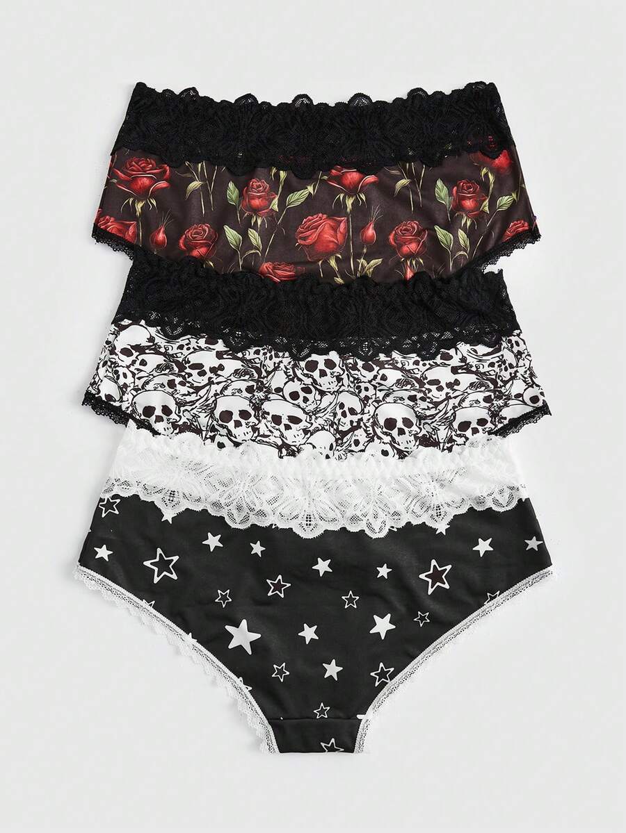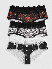 Patishop Art 3pack Floral Print Contrast Lace Panty Set