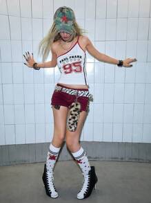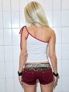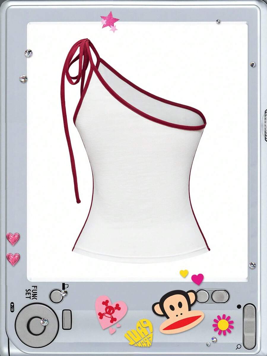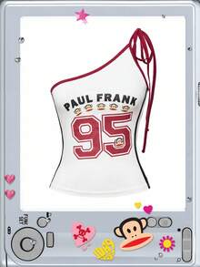 Paul Frank X ROMWE Y2K Subculture Hot Girl Street Women's Contrast Trim Digital Print Street Style One Shoulder Top