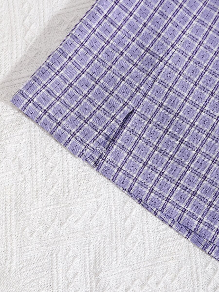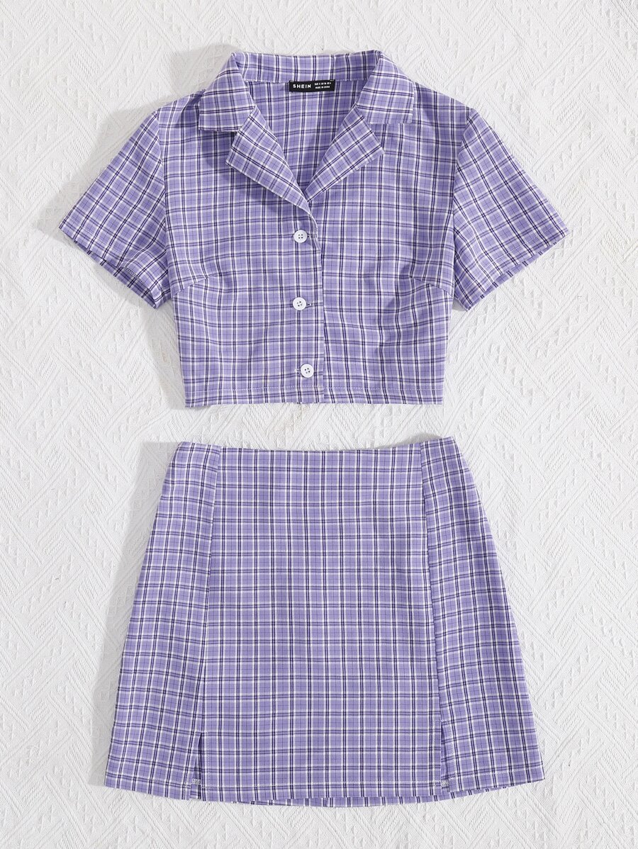 Plaid Crop Blouse & Split Detail Skirt Set