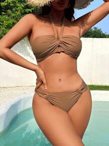 Plain Halter Bikini Set Bathing Suit For Summer Beach