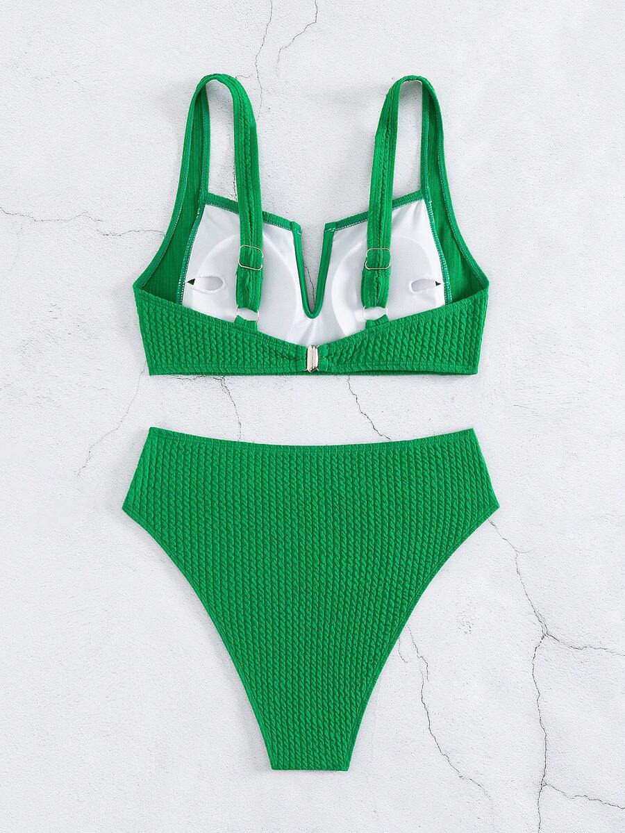 Plain V Neck Bikini Set For Summer Beach