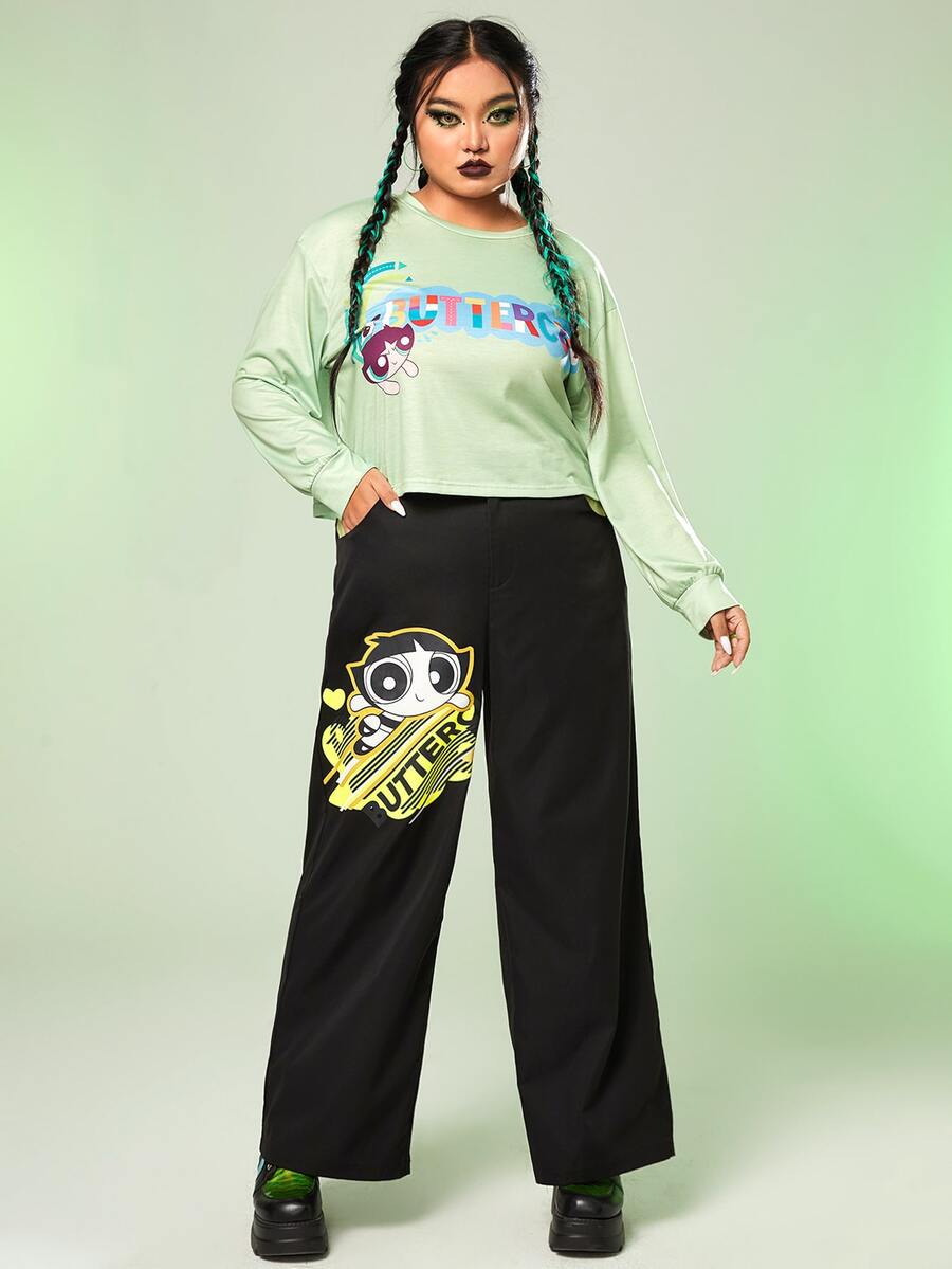 The Powerpuff Girls | ROMWE Plus Cartoon Print Trousers
