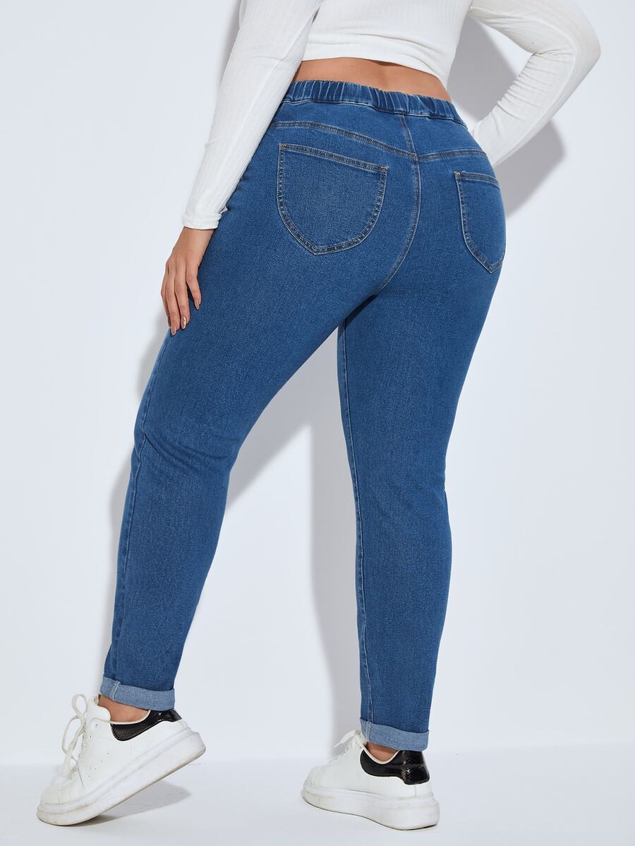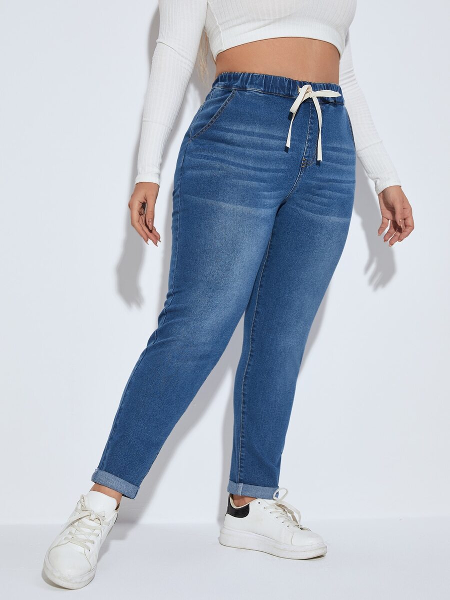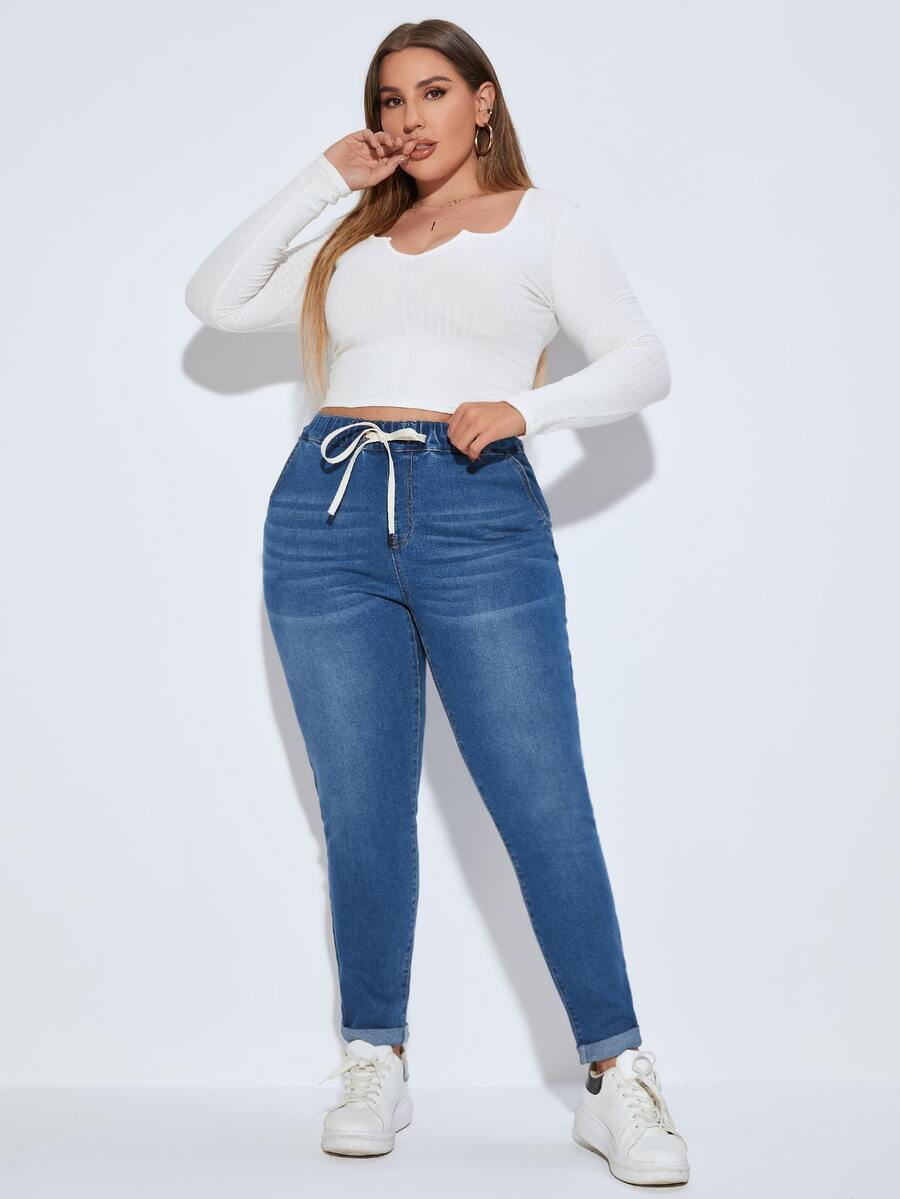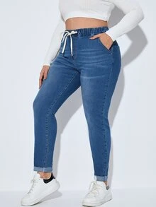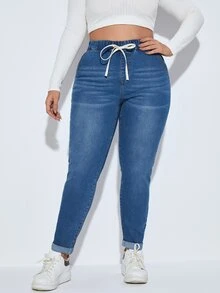 Plus Drawstring Waist Roll Up Hem Skinny Jeans