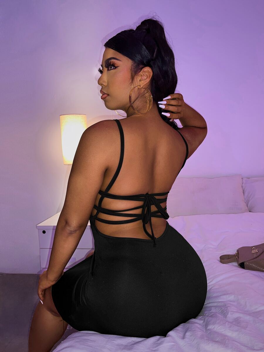Plus Lace Up Backless Cami Dress