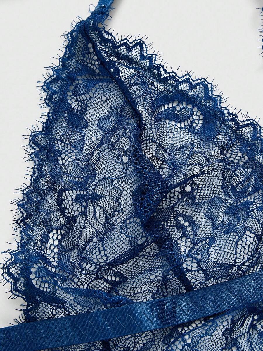 Plus Size Lace Eyelash Trim Criss-Cross Backless Sexy Lingerie Bodysuit