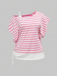 Women's Plus Size Summer Short Sleeve T-Shirt With Hollow Out Design And Drawstring