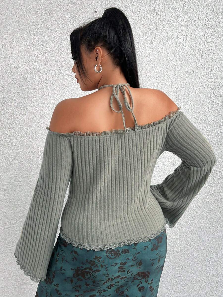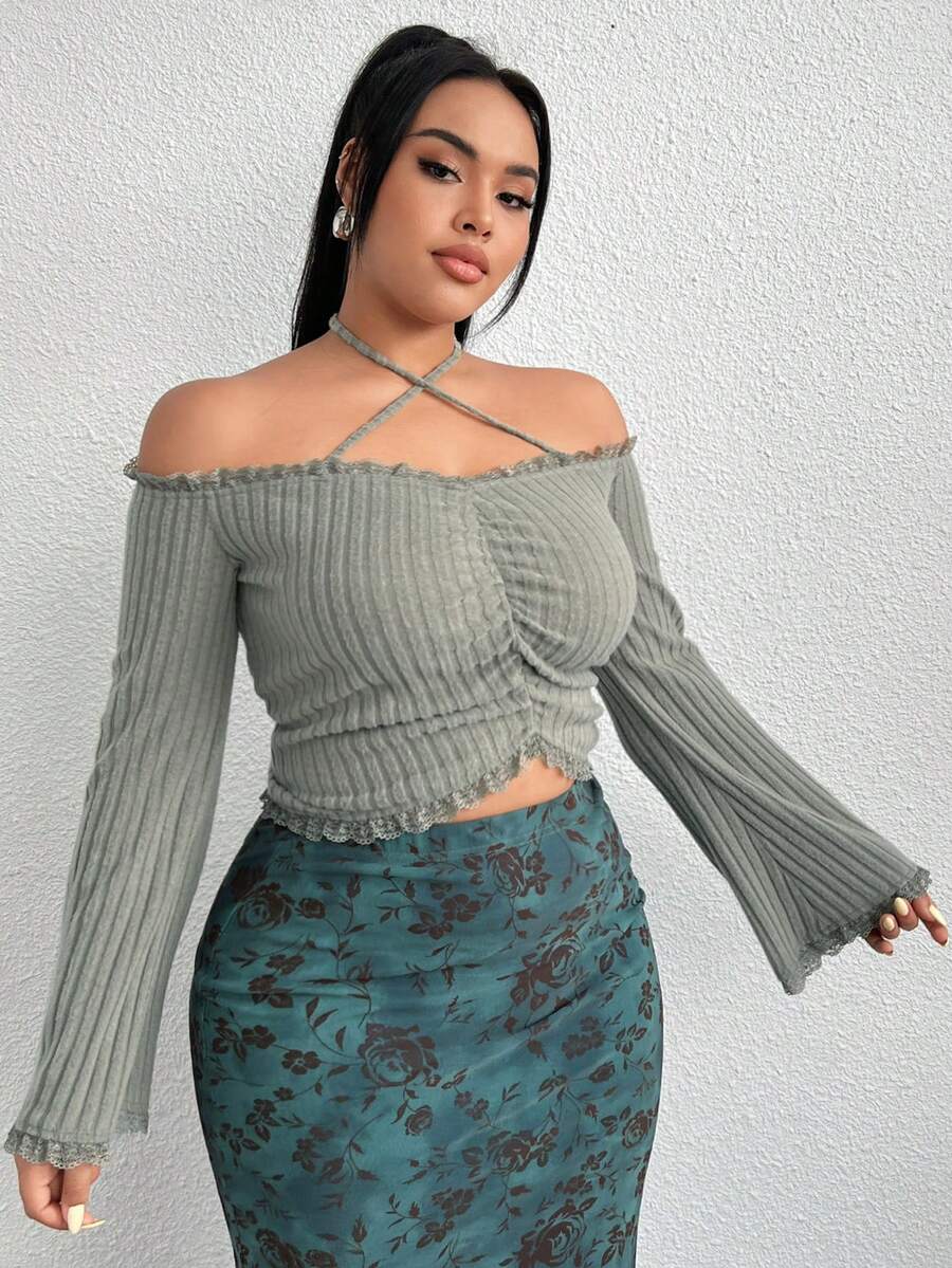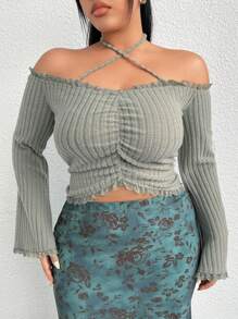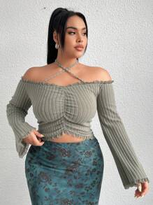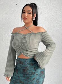 Plus Size Women's Solid Color Halter Neck Back Tie Top