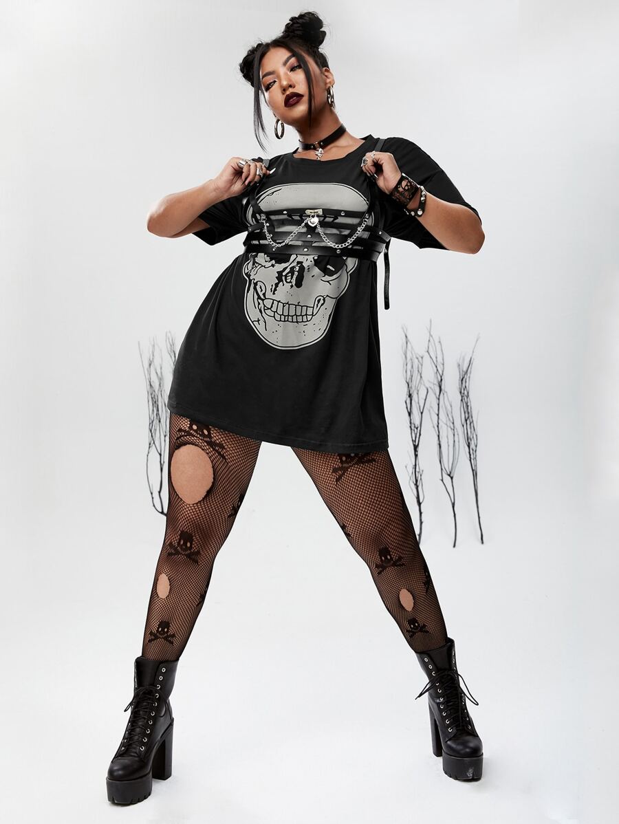 Plus Skull Print Drop Shoulder Tee Without Accessories