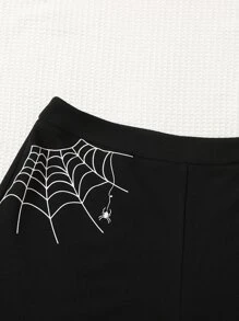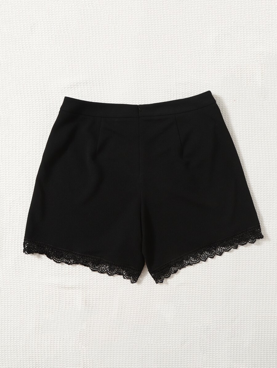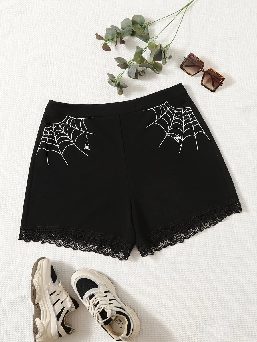Plus Spider Web Print Lace Trim Shorts