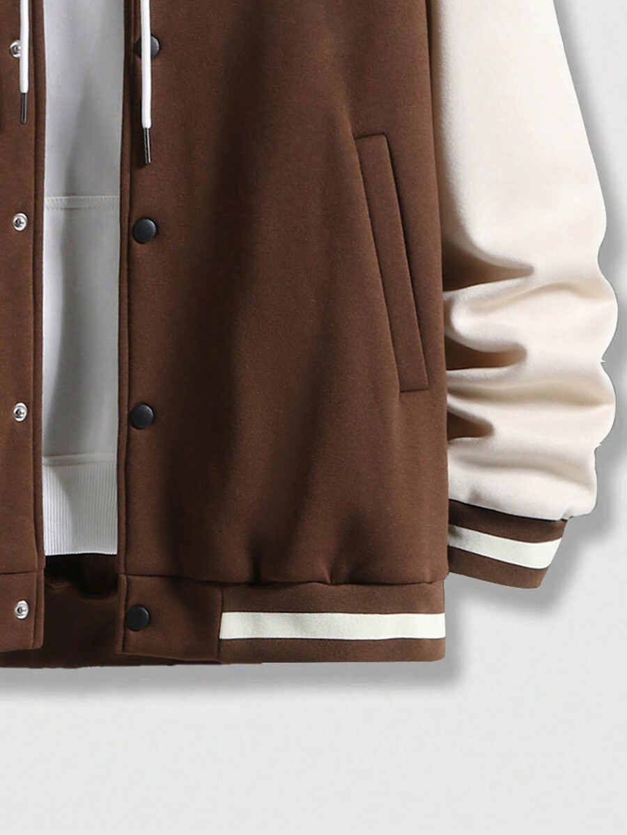 Prep Guys Letter Graphic Two Tone Drop Shoulder Varsity Jacket Without Hoodie