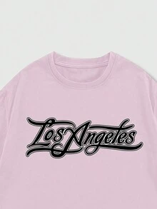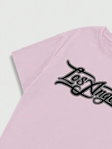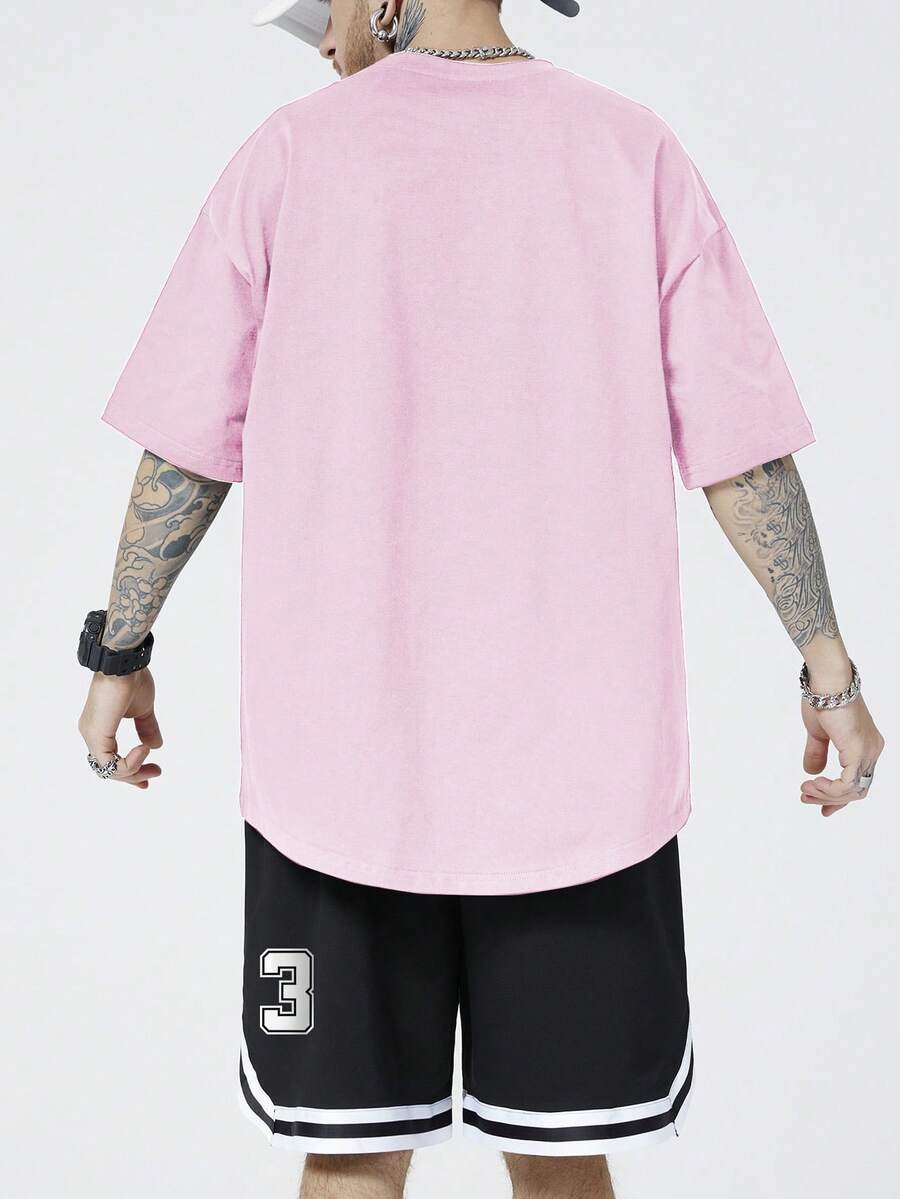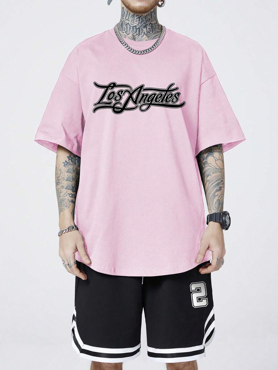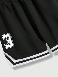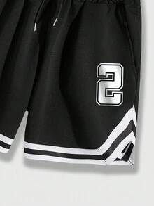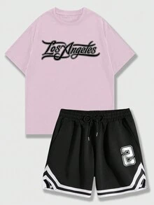 Prep Men Letter Printed T-Shirt & Striped Trim Drawstring Waist Shorts Set