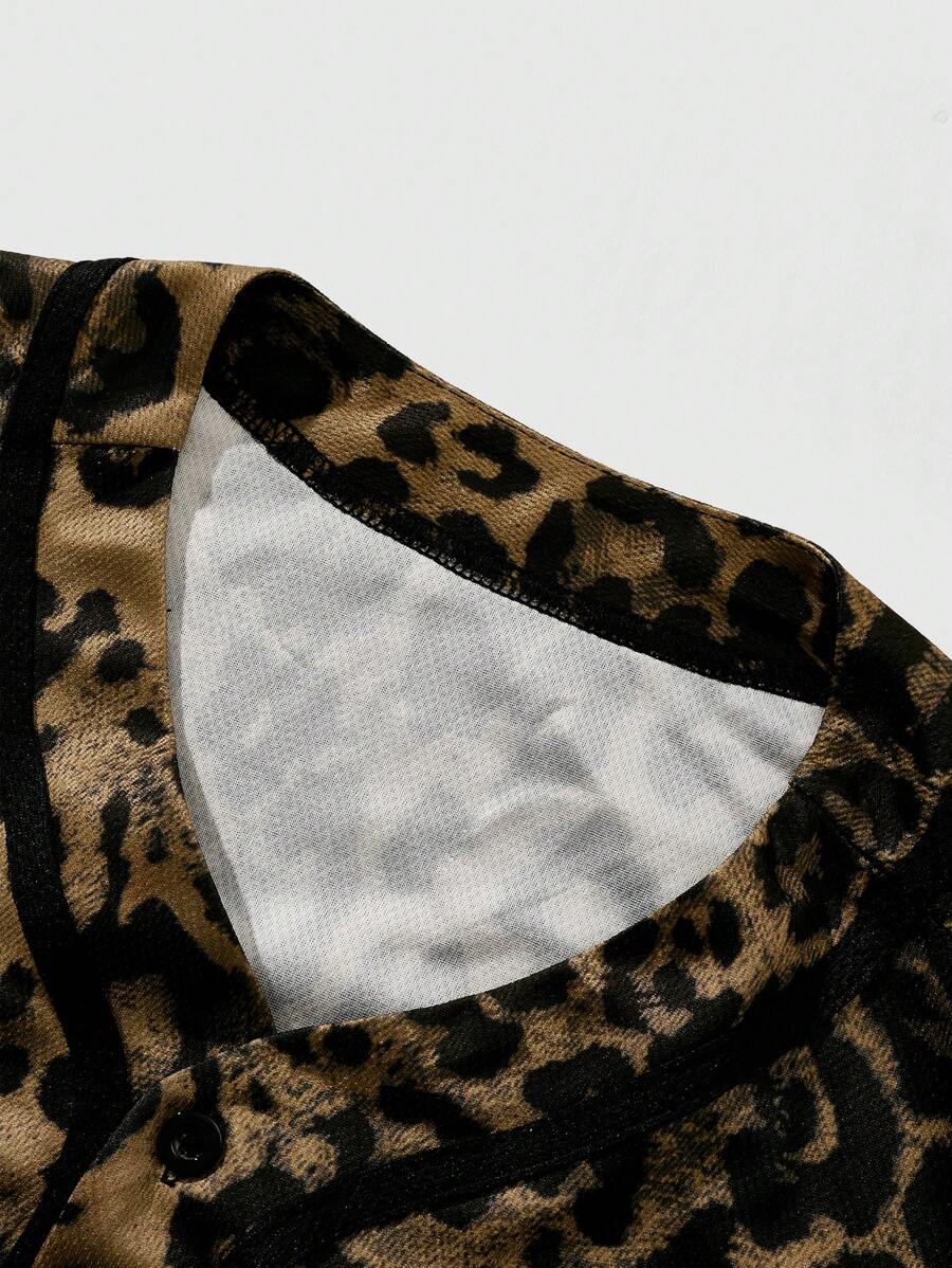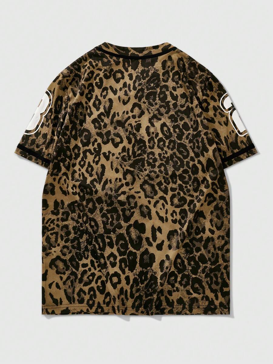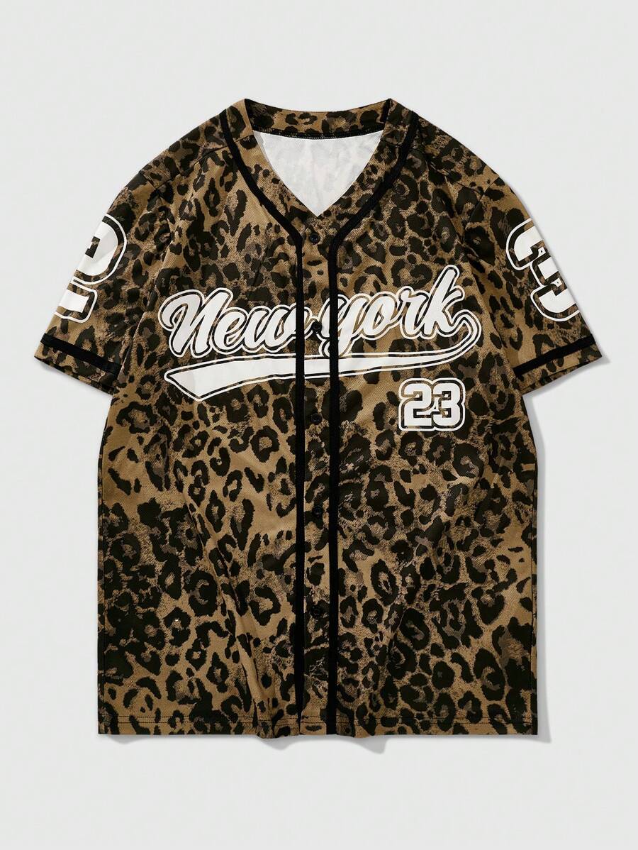 Prep Men's Summer Casual City Logo & Leopard Print Short Sleeve Shirt