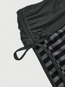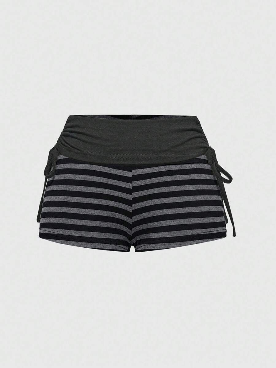 Punk Rock Cute Retro Music Festival Striped Contrast Color Drawstring Super Short Women Shorts