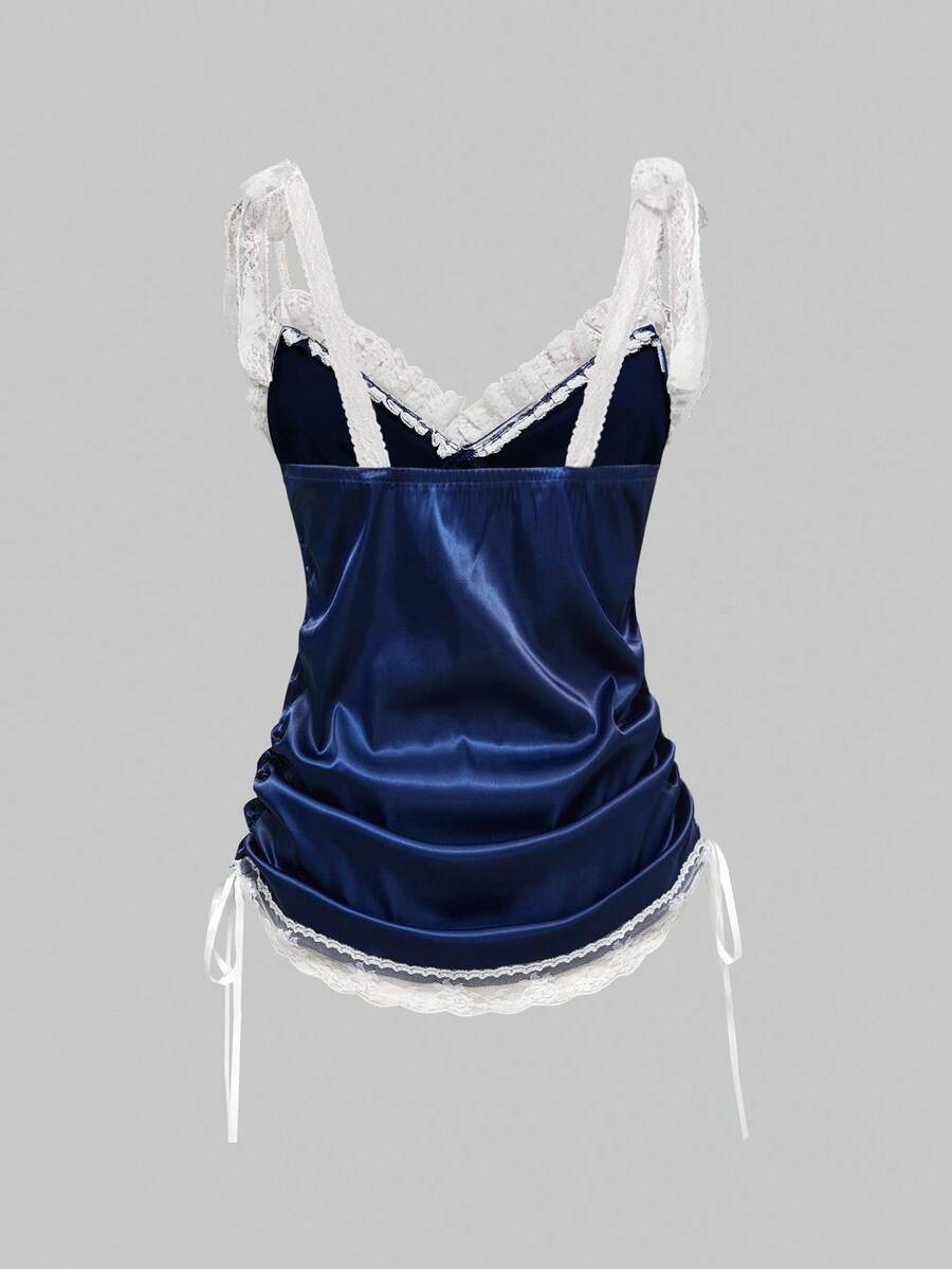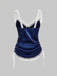 ROMWE Avant Avant Y2K Contrast Lace Drawstring Ruched Women Camisole