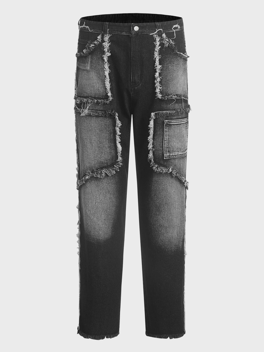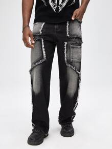 ROMWE Avant Guys Raw Trim Flap Pocket Side Cargo Jeans