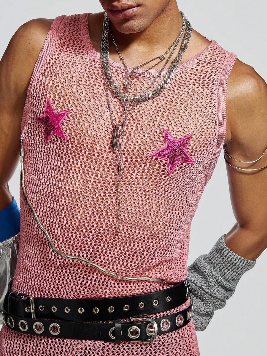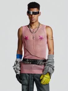 ROMWE Avant Guys Star Patched Pointelle Knit Top
