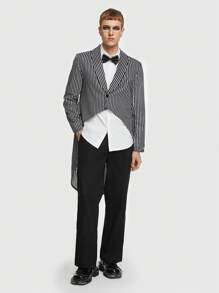 ROMWE Avant Guys Striped Print High Low Hem Coat & Pants