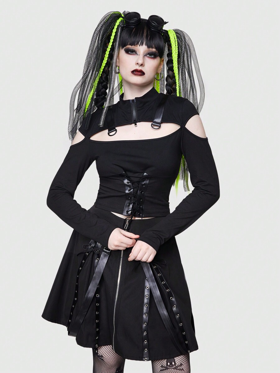 ROMWE Avant Hollow Out Solid Color Long Sleeve T-shirt