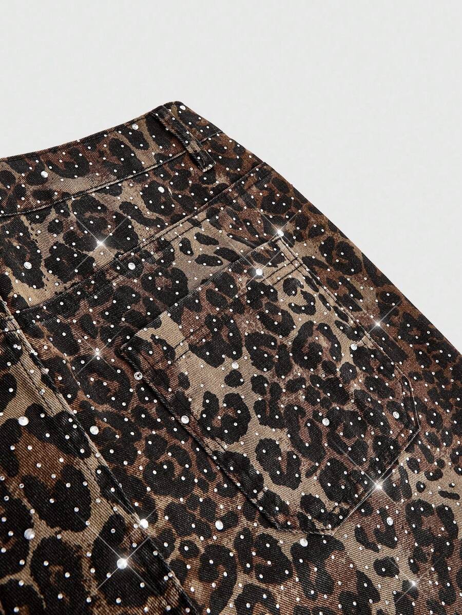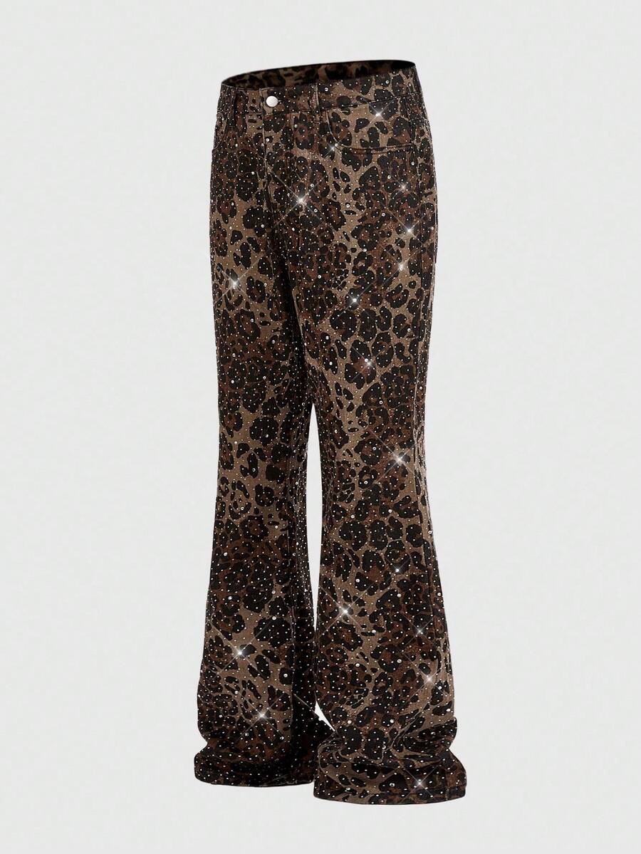 ROMWE Avant Men's Sparkling Diamond Layered Flare Leopard Print Jeans