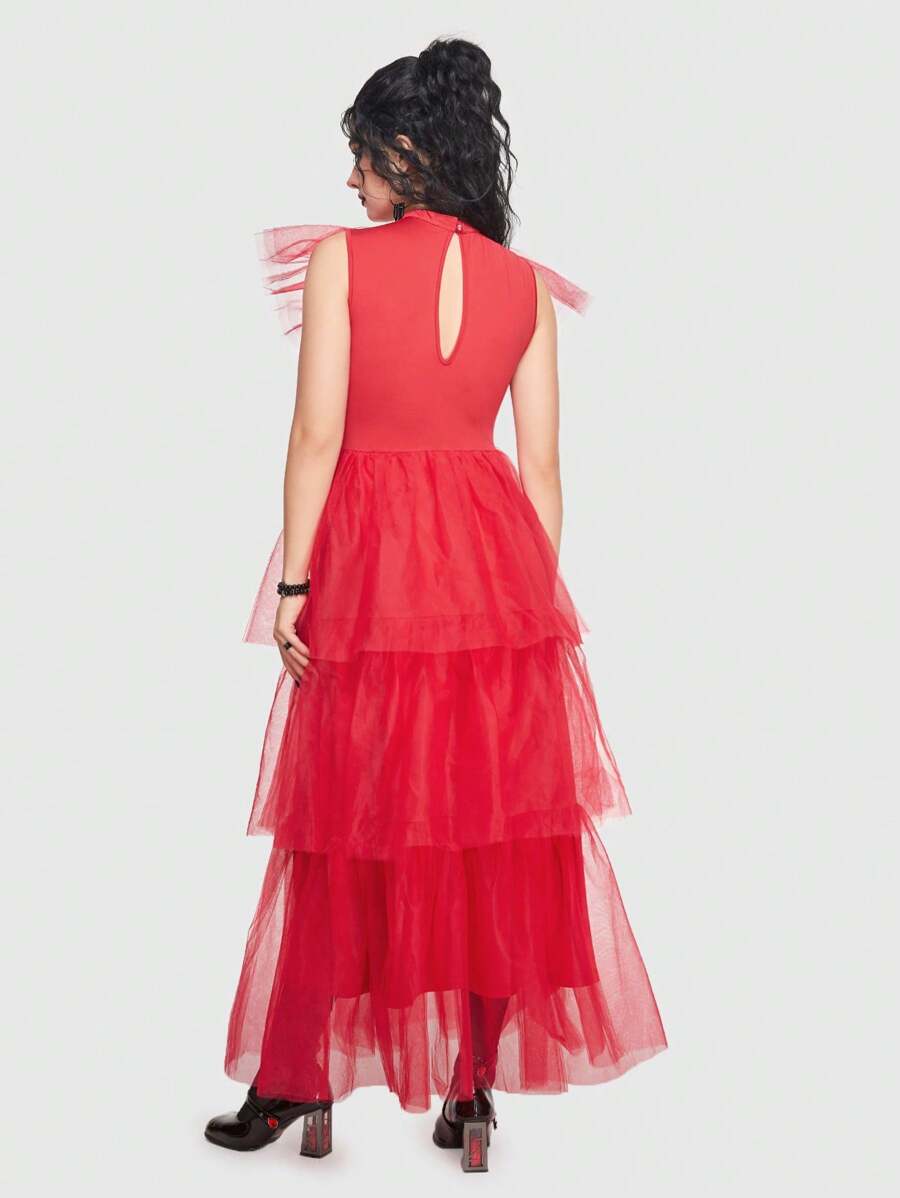 ROMWE Avant Ruffle Trim Mesh Overlay Dress Without Gloves & Veil Costume