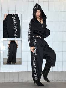 ROMWE Avant Street Style Letter Embroidered Loose Low-Waist Sweatpants For Women