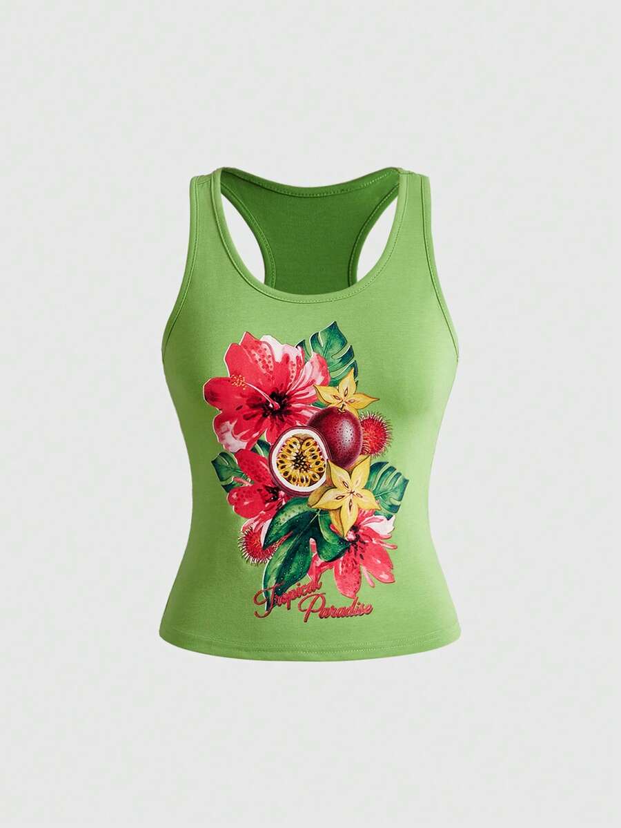 ROMWE Avant Women's All-Match Versatile Tropical Fruit & Hibiscus Print Camisole
