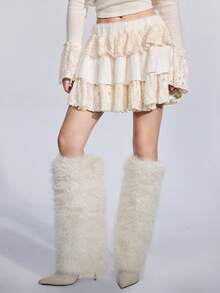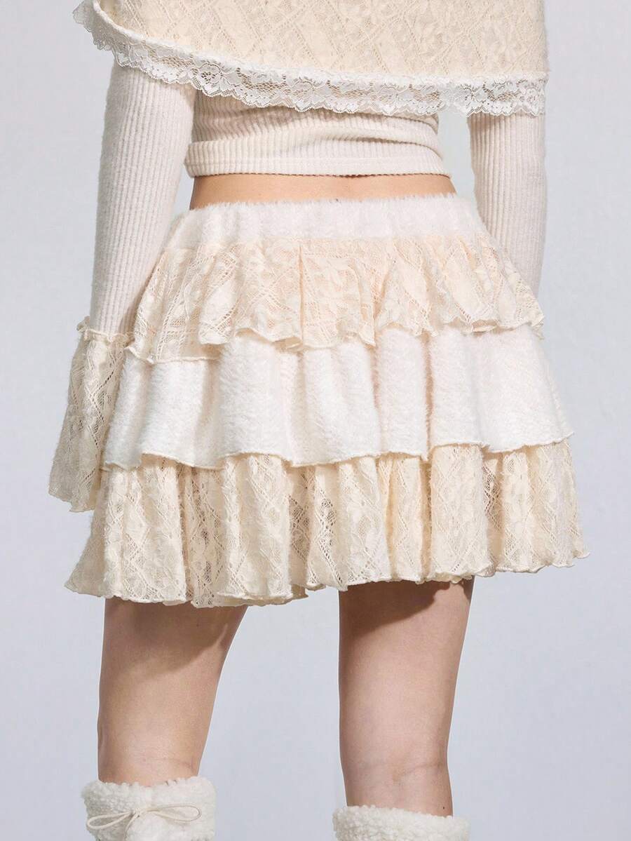 ROMWE Avant Women's Elastic Waist Lace Cake Style Short Skirt