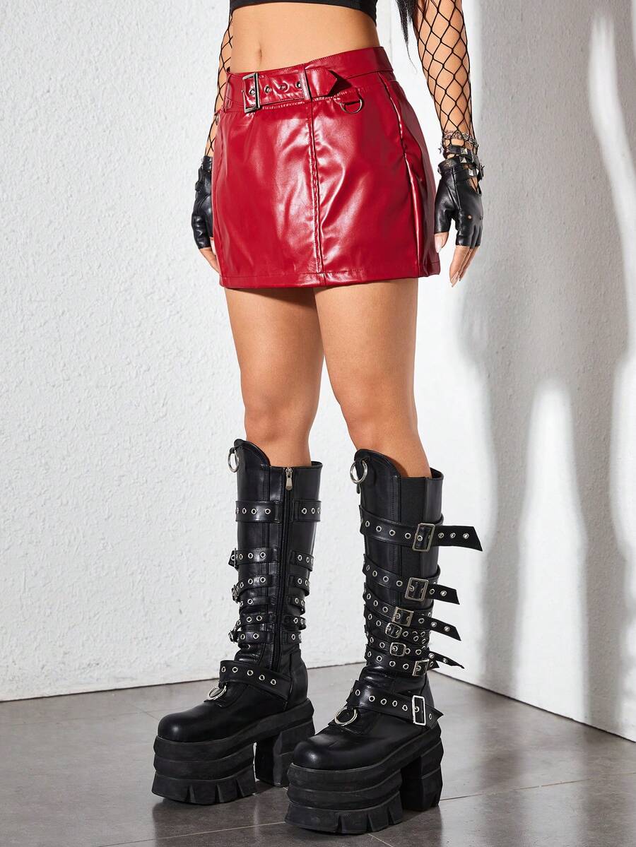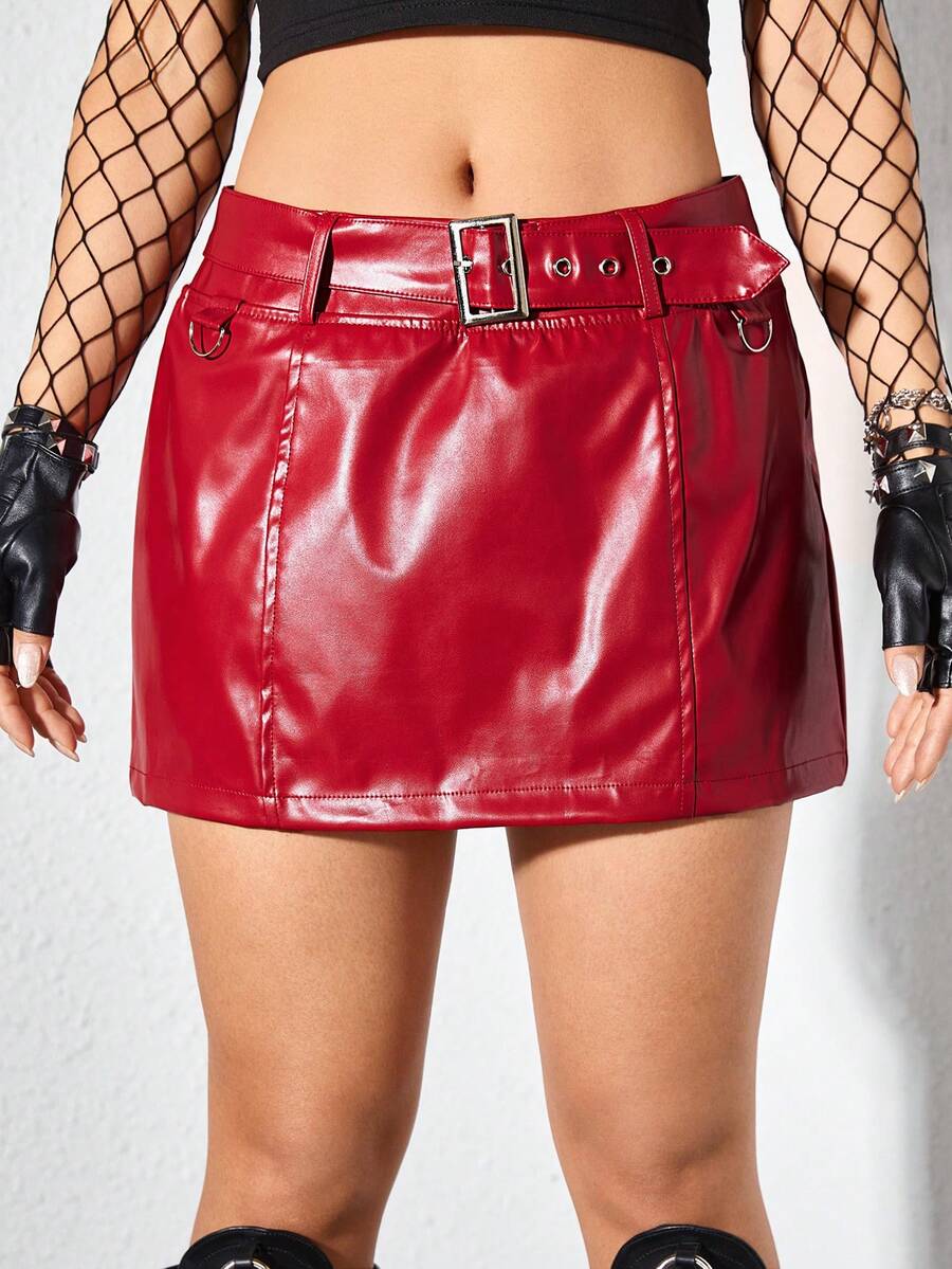 ROMWE Avant Women's Pu Leather Sexy Ultra Low-Rise Bodycon Mini Skirt