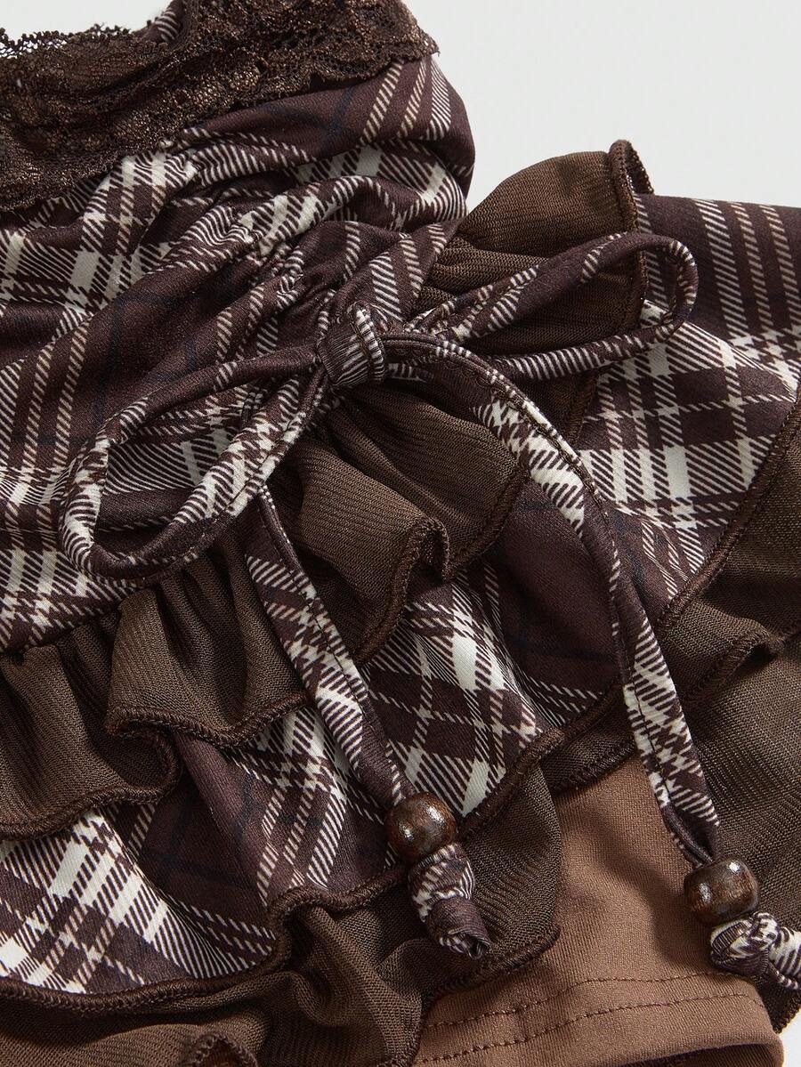 ROMWE Avant Women's Retro College Style Patterned Lace Patchwork Asymmetrical Mini Skirt