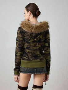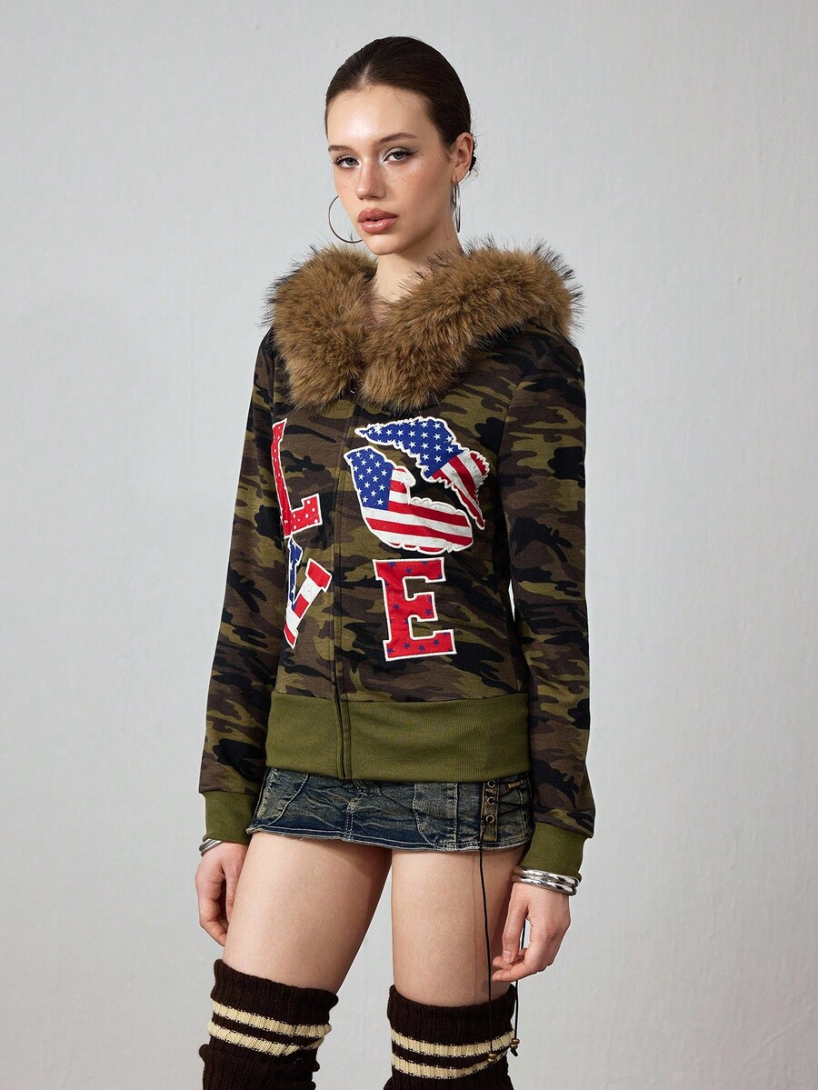 ROMWE Avant Y2K Baddie American Flag Hooded Sweatshirt Sweatshirt, Casual Slim Fit For Women