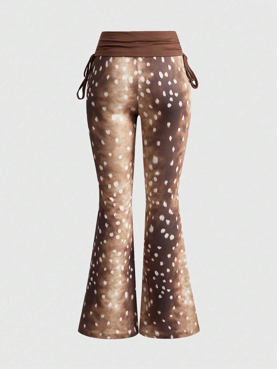 ROMWE Avant Y2K Sexy Low Waist Tight Deer Print Flare Pants
