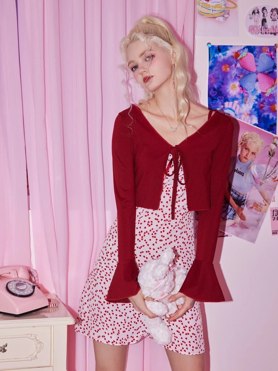 Sweetness Flounce Sleeve Top & Allover Heart Print Dress