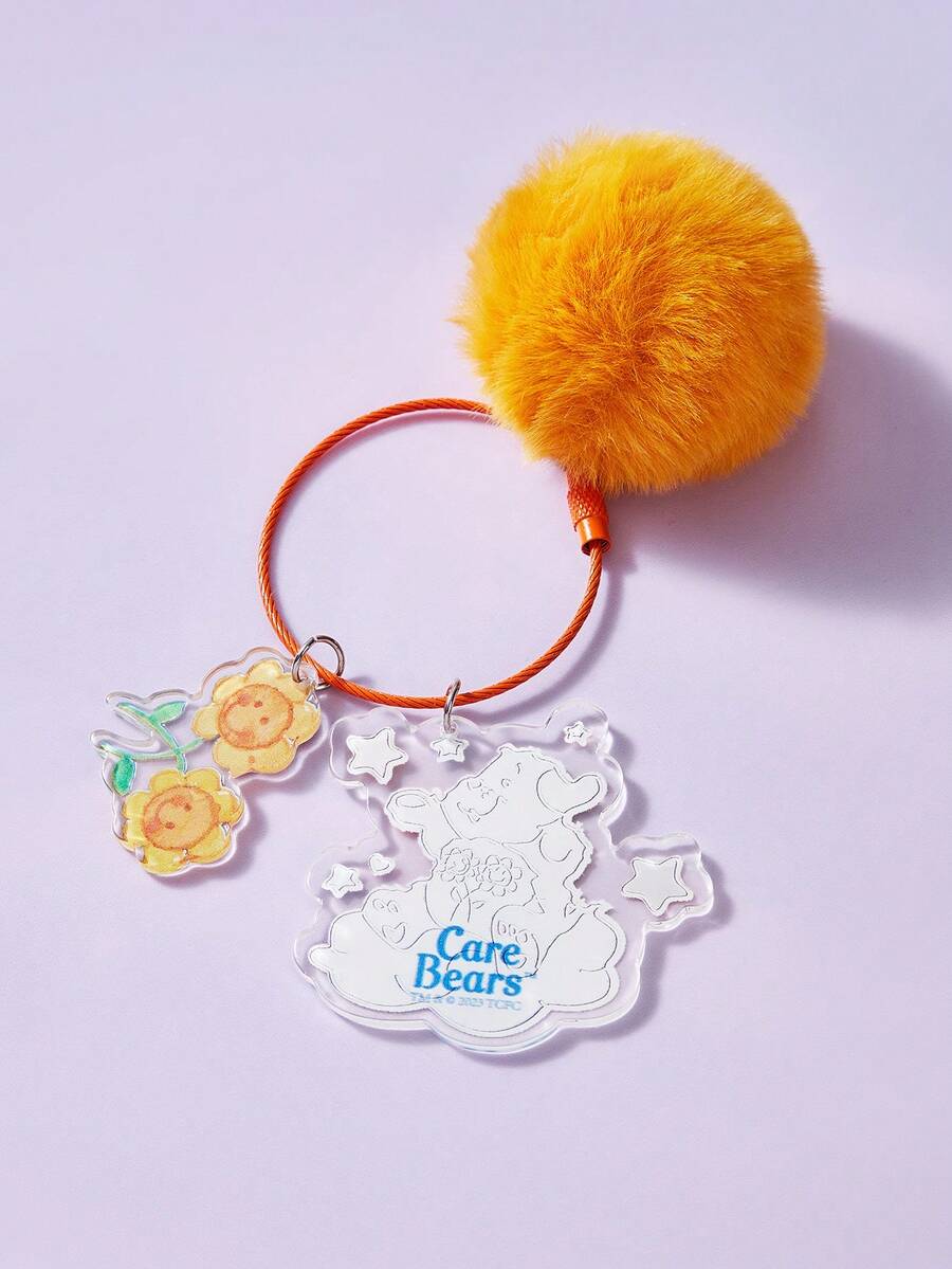 ROMWE X Care Bears 1pc Orange Furry Ball Keychain
