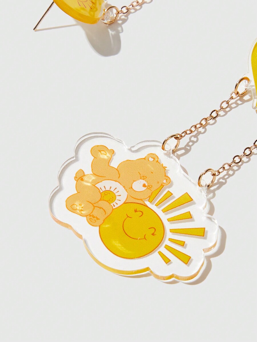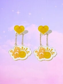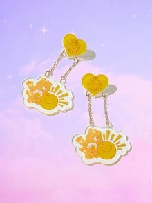 ROMWE X Care Bears 2pcs Cute Acrylic Cartoon Bear Pattern Heart Decor Drop Earrings For Women For Daily Decoration