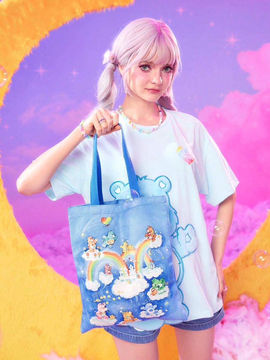 ROMWE X Care Bears Oversized Shopper Bag Cartoon Bear Graphic For ShoppingSchool Bag,Large Capacity,Classic Casual,Portable, Suitable For Teen Girls Women College Students, Perfect For Back To School,Shopping,Middle School, High School,College
