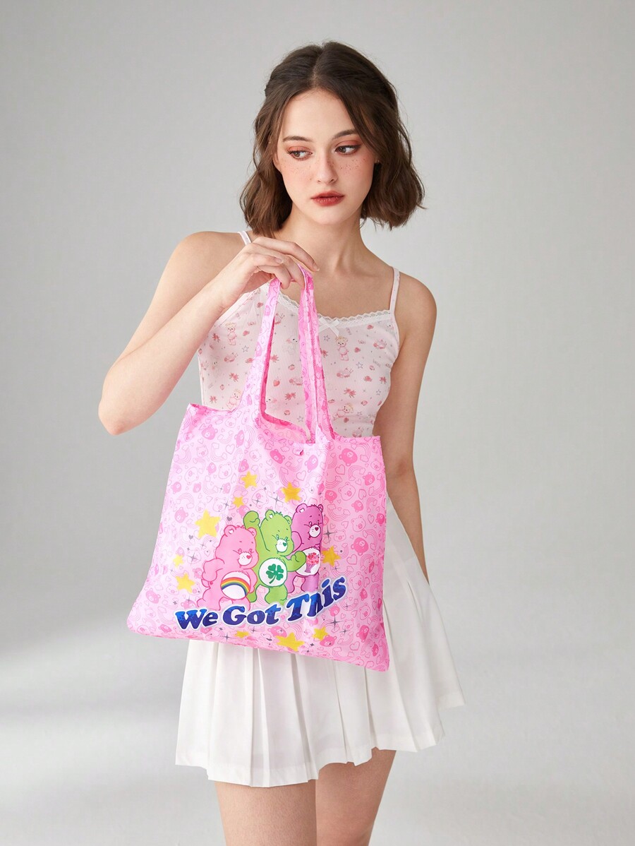 ROMWE X Care Bears Small Shopper Bag With Coin Purse Cute Slogan Cartoon Print pink