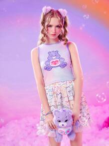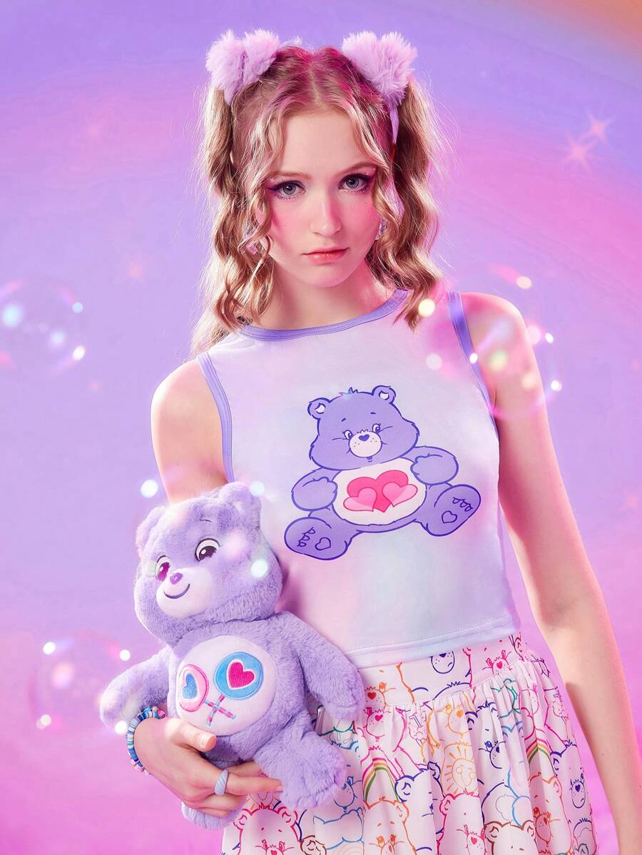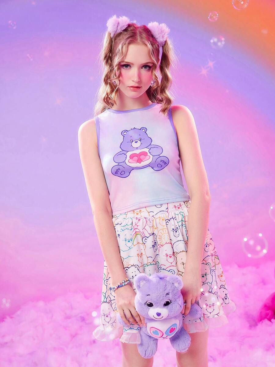 ROMWE X Care Bears Tie Dye Cartoon Graphic Contrast Binding Tank Top