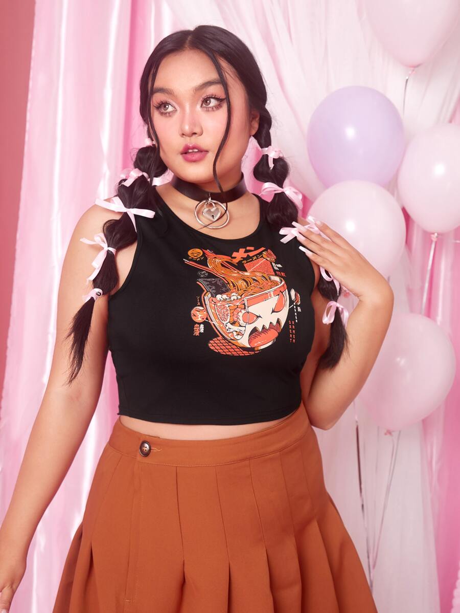 Ilustrata Plus Cartoon Graphic Crop Tank Top
