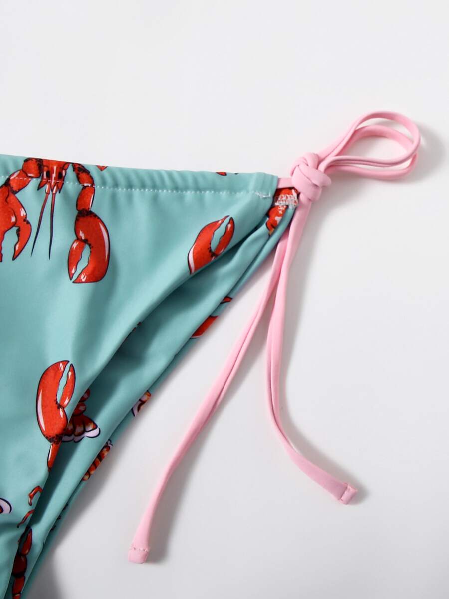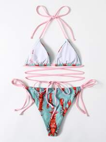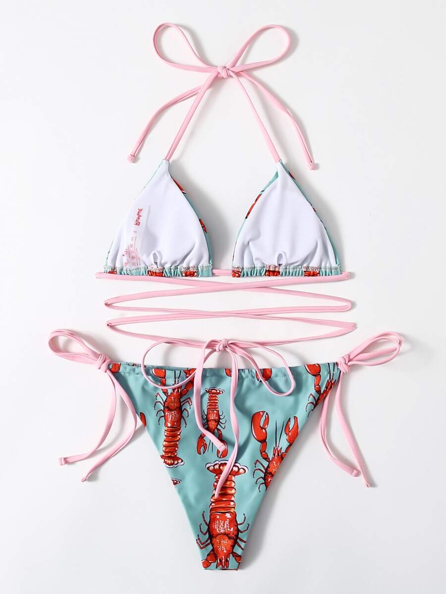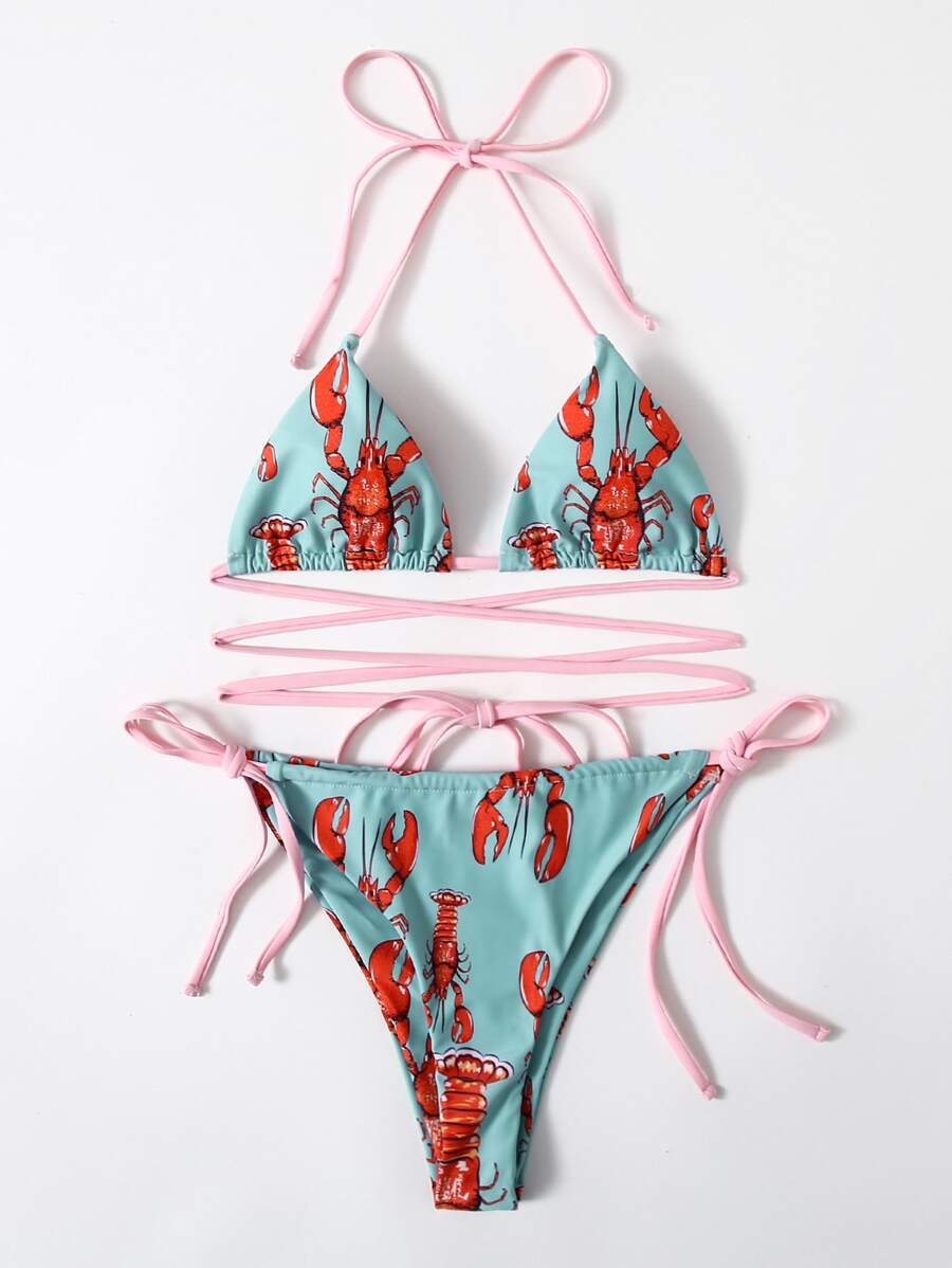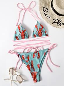 Random Lobster Print Crisscross Bikini Set Summer Beach