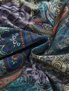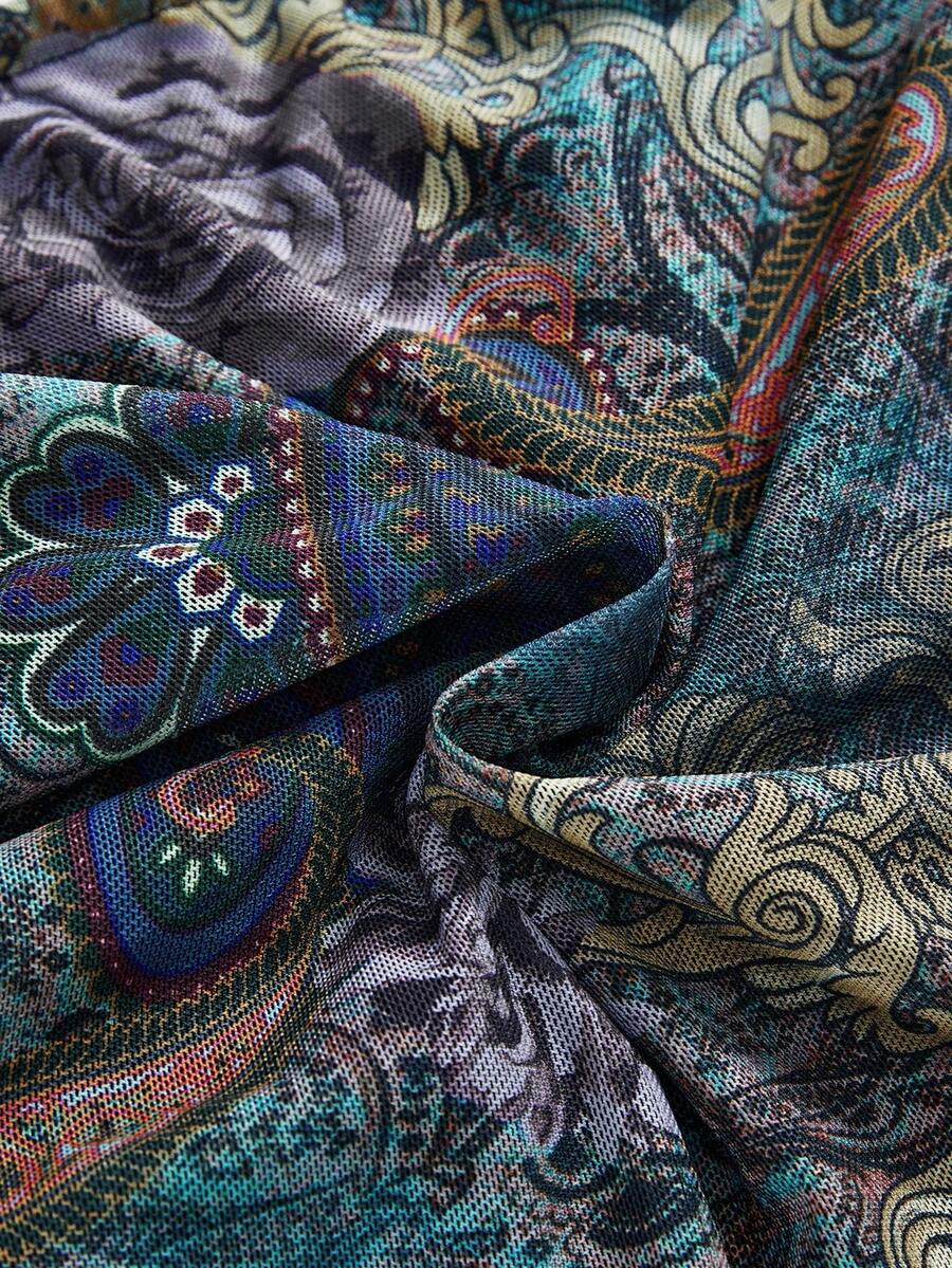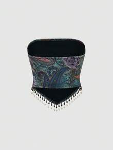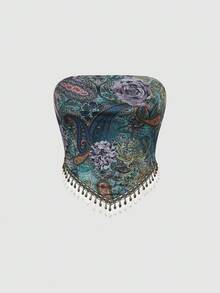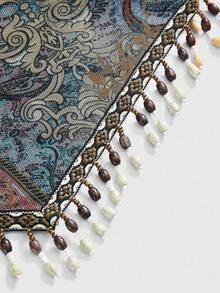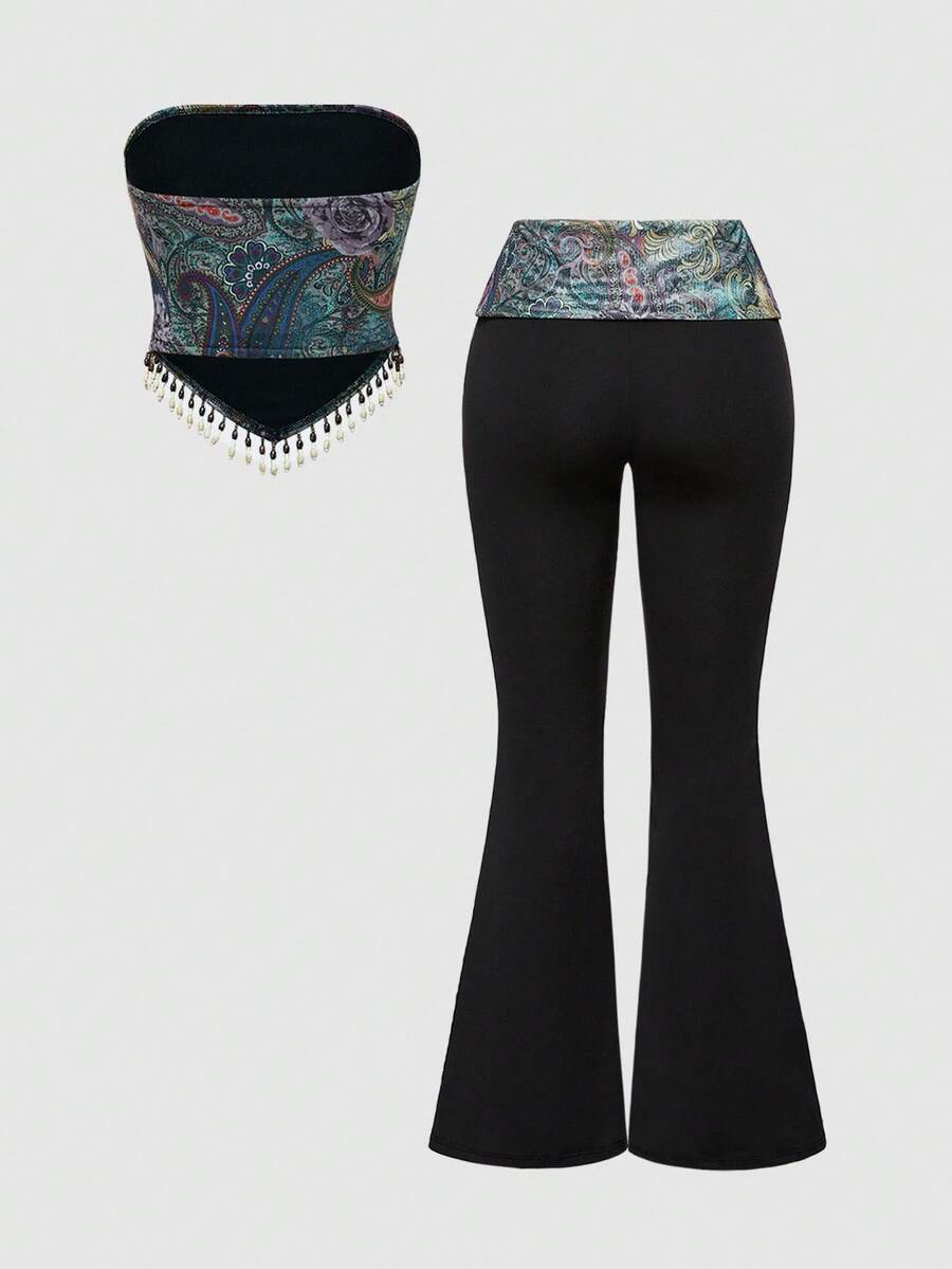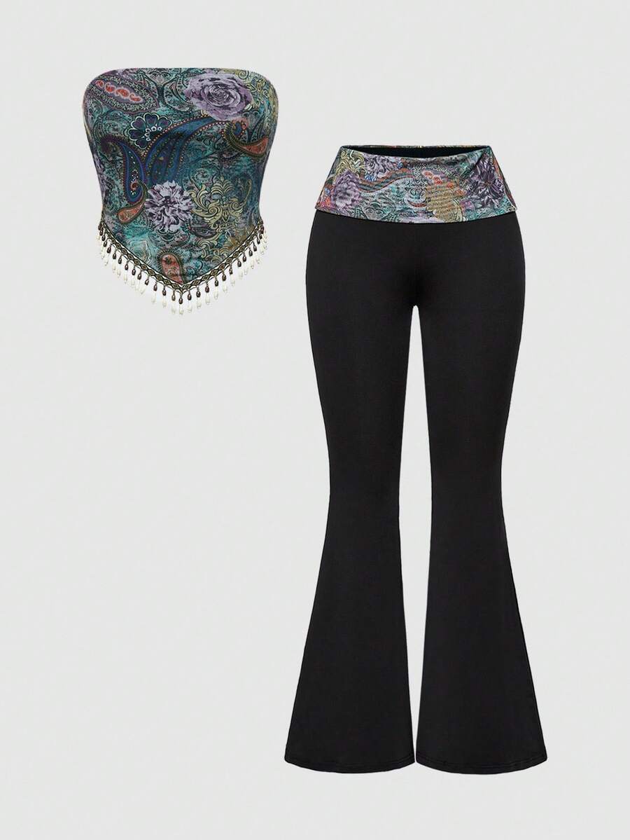 Retro Hippie Western Music Festival Wooden Bead Tassel Hem Paisley Print Bohemian Women's Set