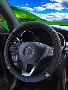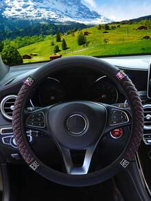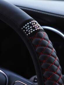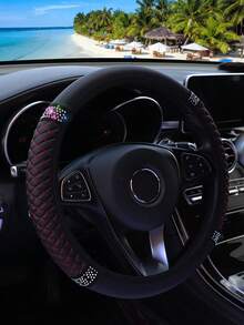 1pc Colorful Embroidery Leather Rhinestone Car Steering Wheel Cover Without Inner Ring, Suitable For 14.5-15 Inches