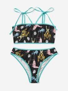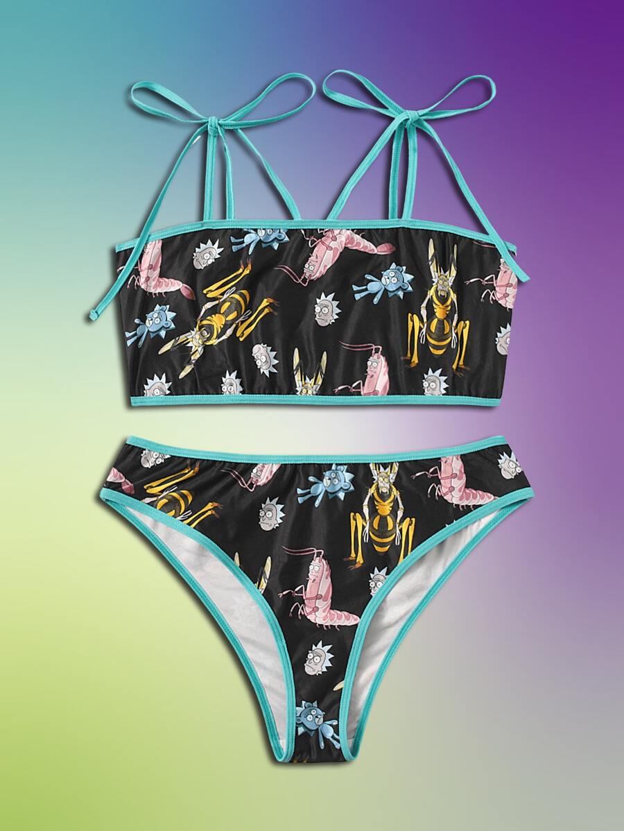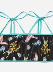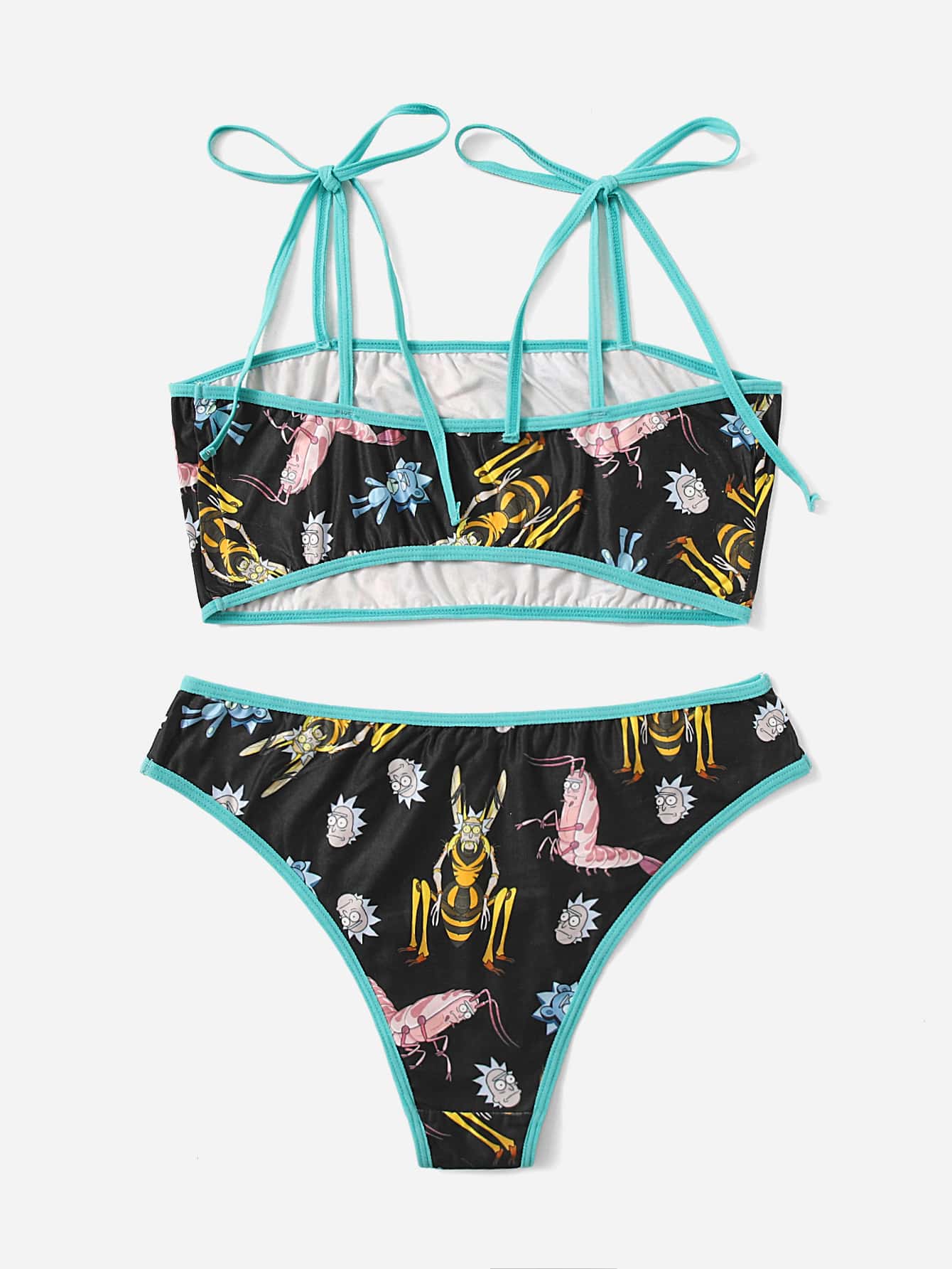 Rick and Morty | ROMWE Cartoon Graphic Contrast Binding Tie Shoulder Lingerie Set