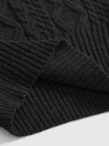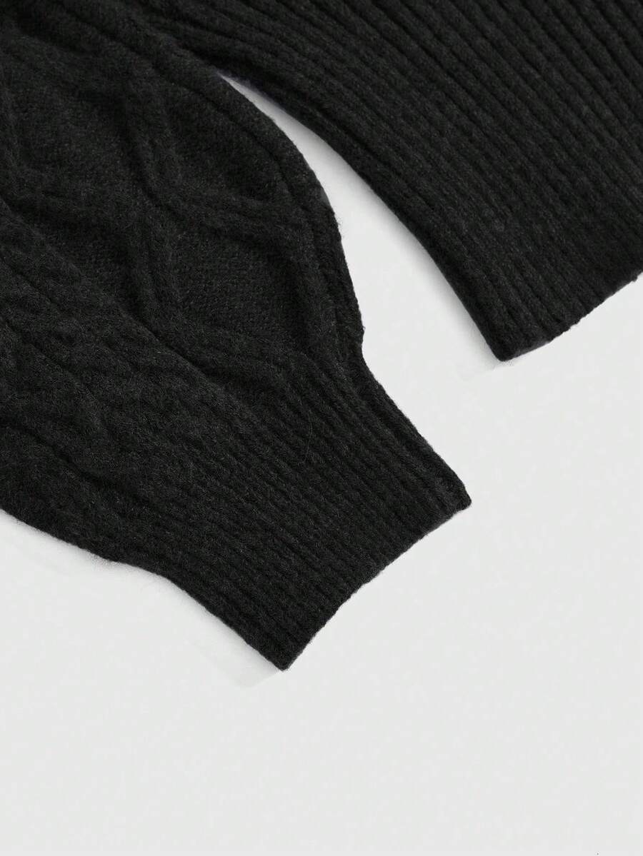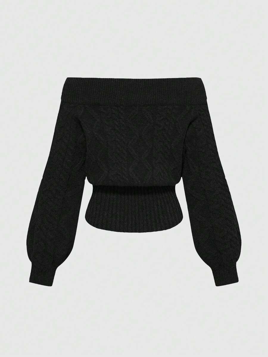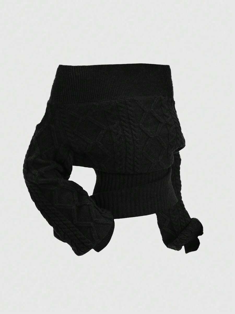 Romantic Thick Knit Z-Pattern Deep Floral Gray Off-Shoulder Lantern Sleeve Pullover Sweater