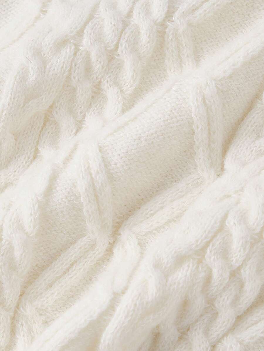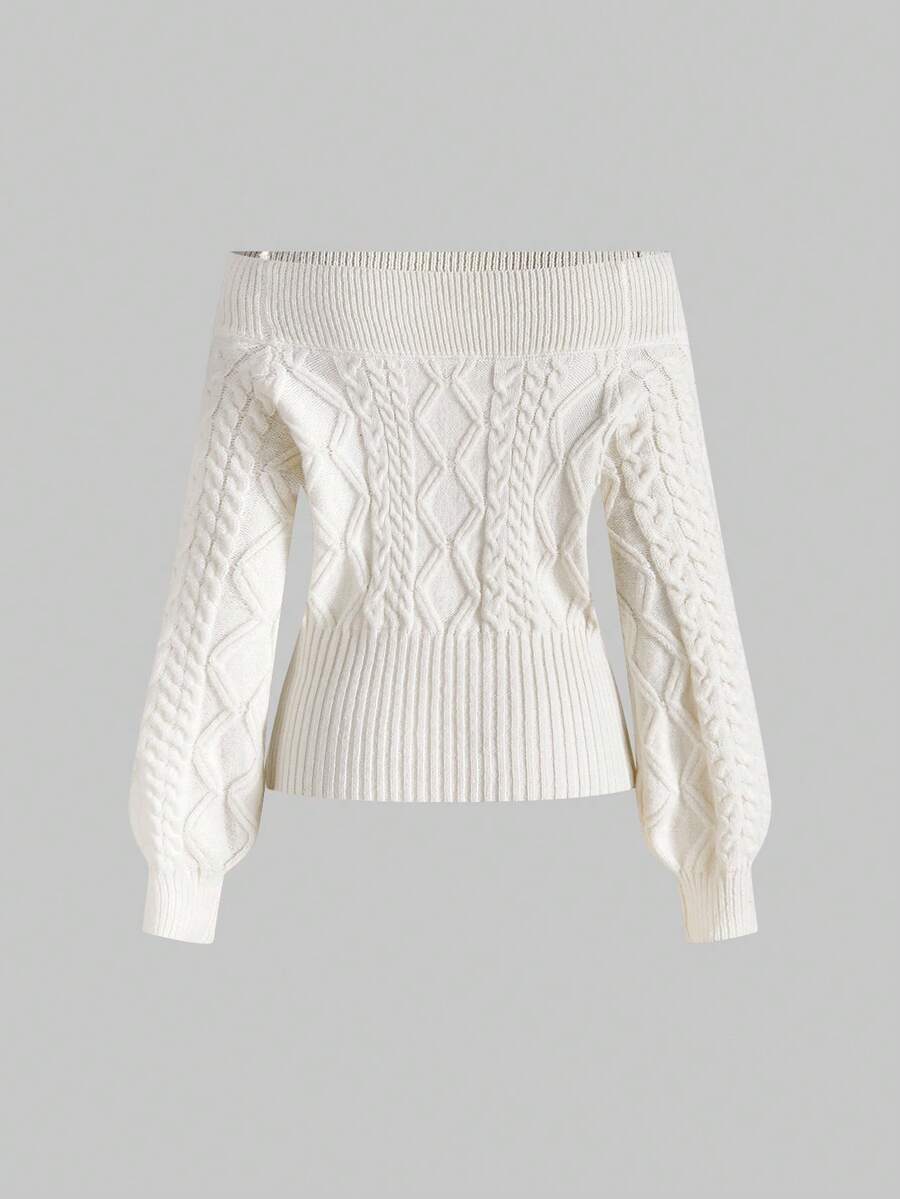 Romantic Thick Knit Z-Pattern Deep Floral Gray Off Shoulder Lantern Sleeve Pullover Sweater
