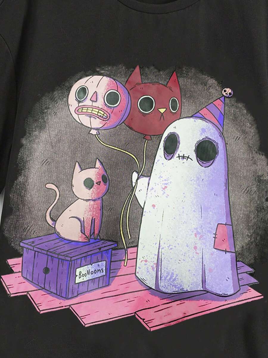 SICKYLL Plus Size Women's Cartoon Pattern Drop Shoulder T-Shirt, School