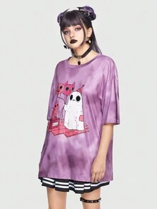 SICKYLL Tie Dye Cartoon Graphic Drop Shoulder Tee