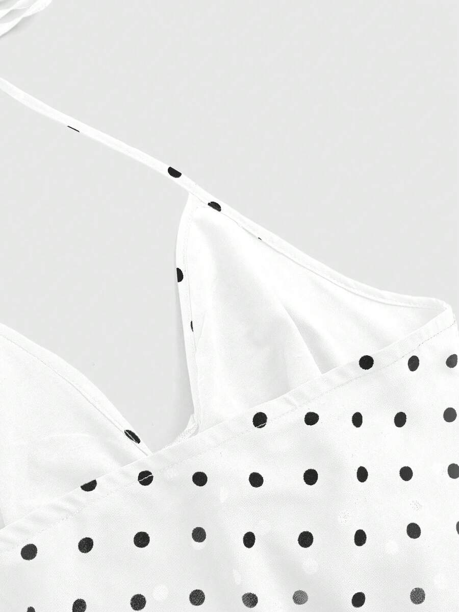 Sexy Y2K Polka Dot Chiffon Full Print Ruffle Edge Design With Neck Band Ladies Tank Top
