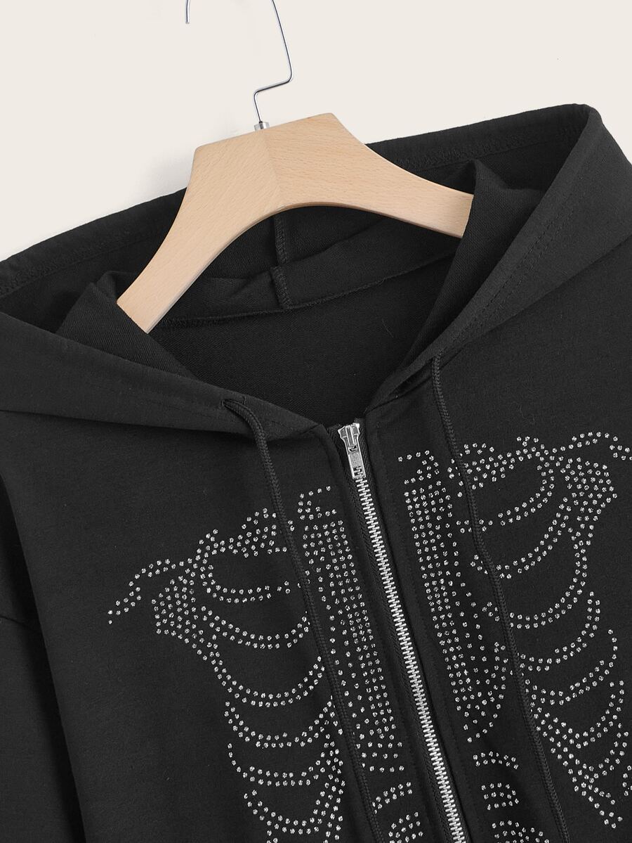 Skeleton Rhinestone Zip Up Pocket Hoodie