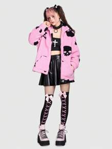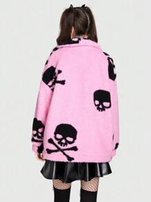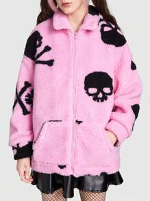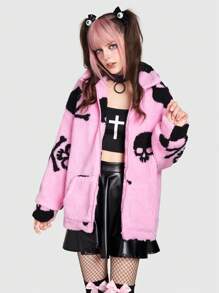 Skull Pattern Patch Pocket Drop Shoulder Hooded Jacket