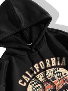 Slogan Graphic Kangaroo Pocket Thermal Drawstring Hoodie